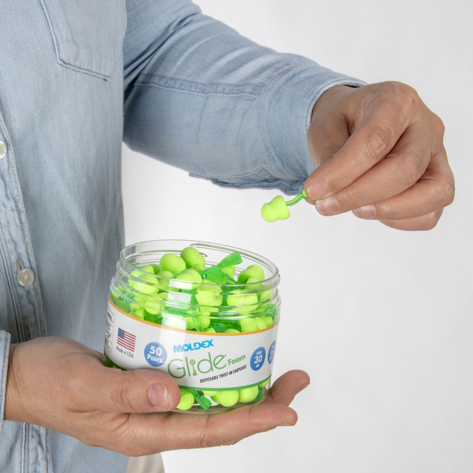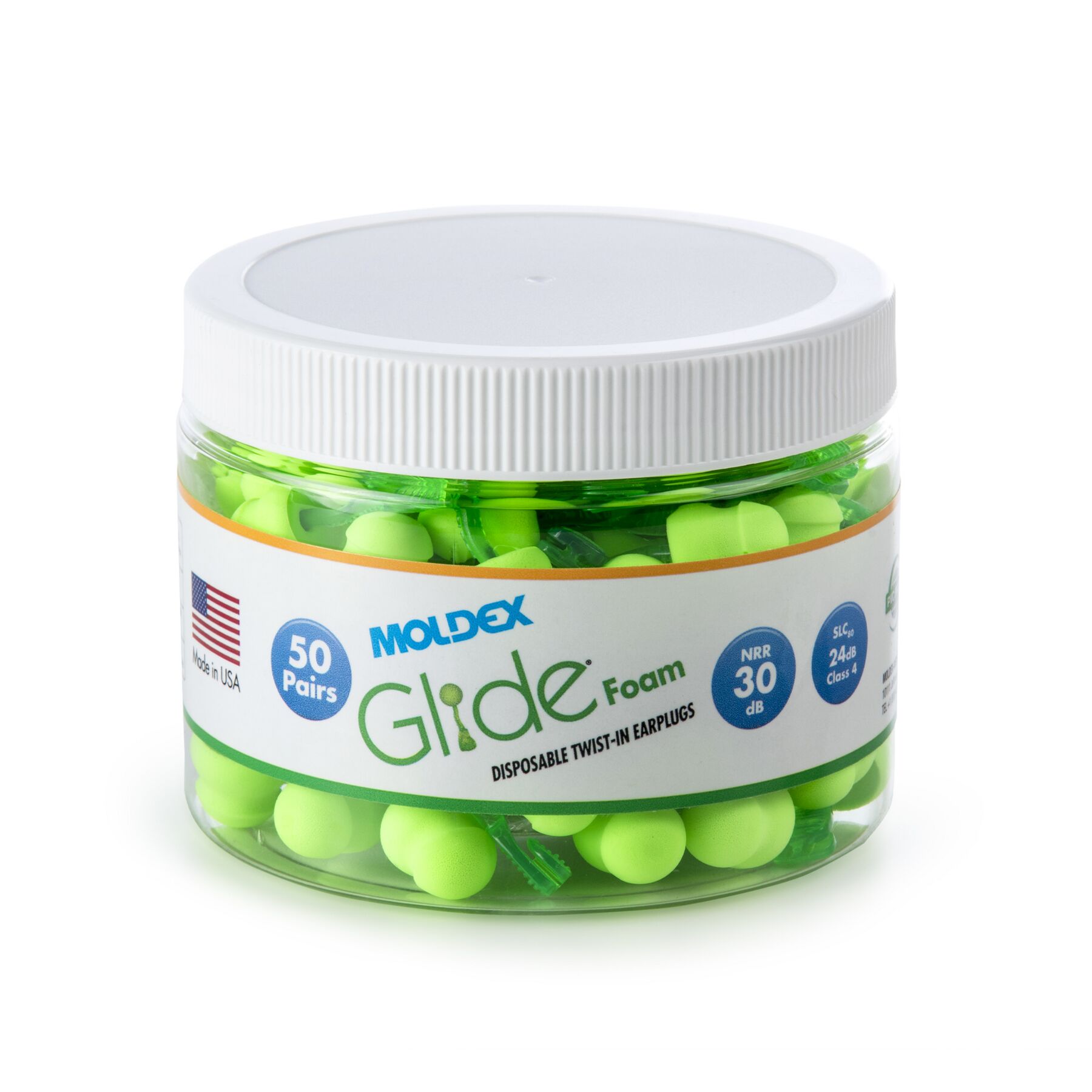 Meet Moldex® Glide® Foam Earplugs Jar 6686, push-and-twist hearing protection designed for fast use in demanding work environments. Featuring a patented Twist-In earplug design, Glide® earplugs allow workers to simply push and twist for a custom fit—no roll-down required—making them ideal for dirty hands or gloved use. Independently tested to an NRR of 30 dB, the soft foam pod and innovative multi-curved stem work together to deliver dependable noise reduction and a comfortable seal that supports consistent wear and improved compliance. Glide® Foam earplugs are 100% Made in the USA.