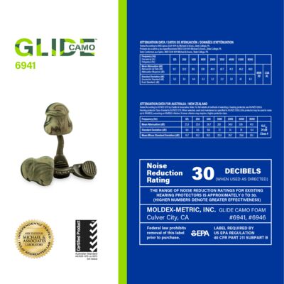 Meet Moldex® Glide® Camo Foam Earplugs 6941, push-and-twist hearing protection designed for fast use in demanding work environments. Featuring a patented Twist-In design, Glide® earplugs let workers simply push and twist for a custom fit—no roll-down required—making them ideal for dirty hands or gloved use. Independently tested to an NRR of 30 dB, the soft camo foam pod and innovative multi-curved stem work together to deliver noise reduction and a comfortable seal that supports consistent wear and improved compliance. Glide® Camo Foam earplugs are 100% Made in the USA.