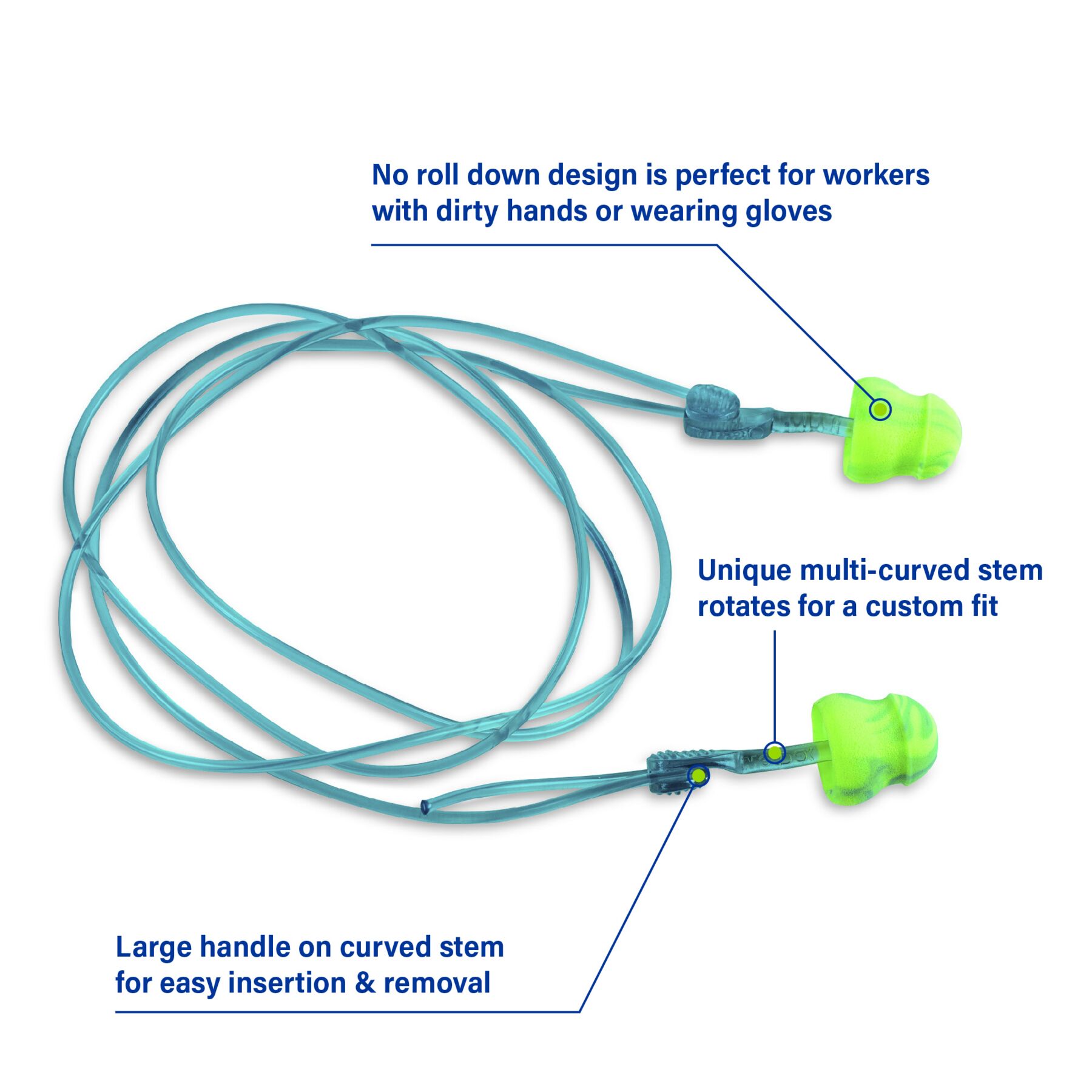 • EASE OF INSERTION Glide® earplugs unique multi-curved stem rotates for a custom fit inside each ear canal.