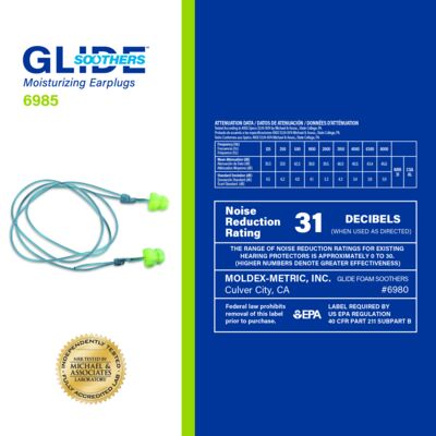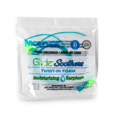Meet Moldex® Glide® Soothers™ Moisturizing Corded Foam Earplugs 6980, designed to hydrate and moisturize the ear canal for all-day comfort in high-noise work environments. The soft, moisturizing foam pod helps reduce dryness and irritation while supporting longer, more consistent wear throughout the shift. Featuring a patented push-and-twist Twist-In design, these moisturizing earplugs insert quickly with no roll-down required, making them ideal for dirty hands or gloved use. Independently tested to an NRR of 31 dB, the innovative multi-curved stem creates a comfortable seal. 100% Made in the USA.