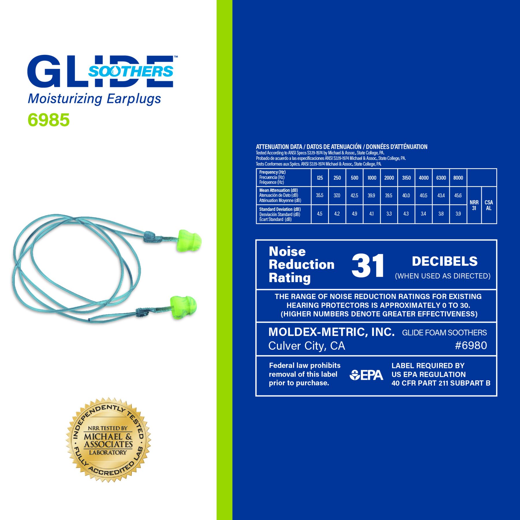 Moldex Glide® Soothers Moisturizing Corded Foam Earplug 6985, NRR 31dB