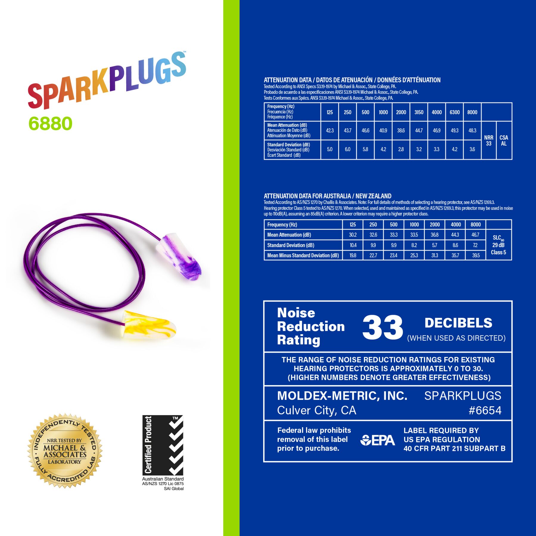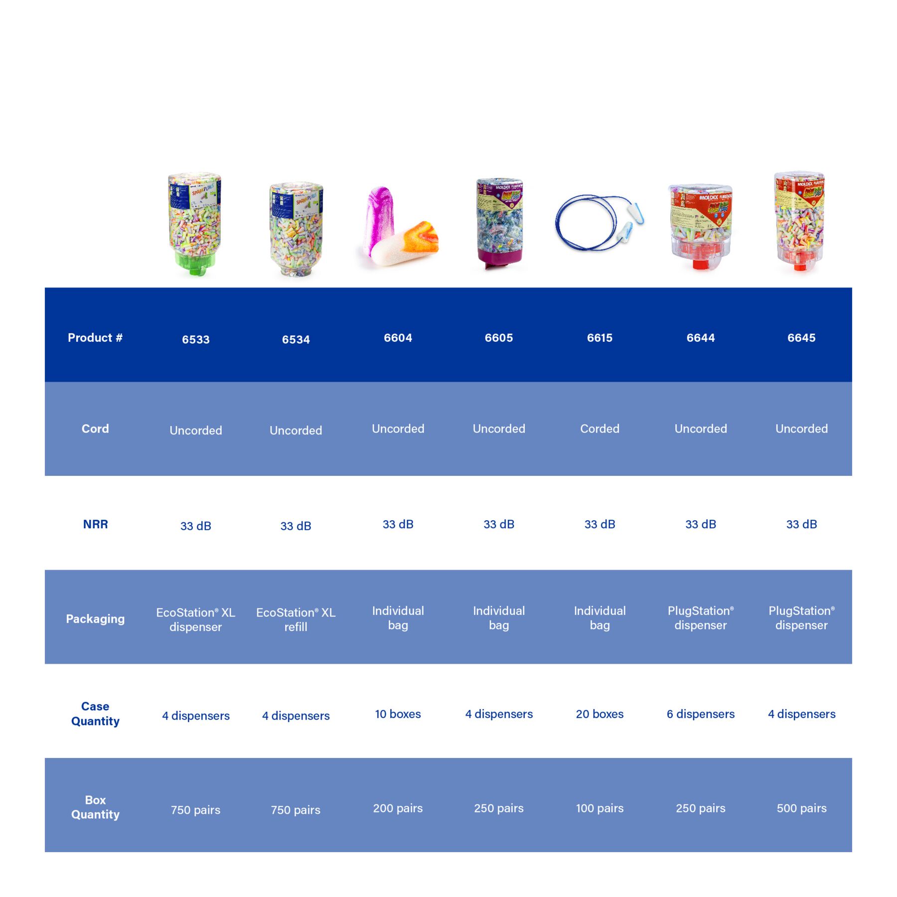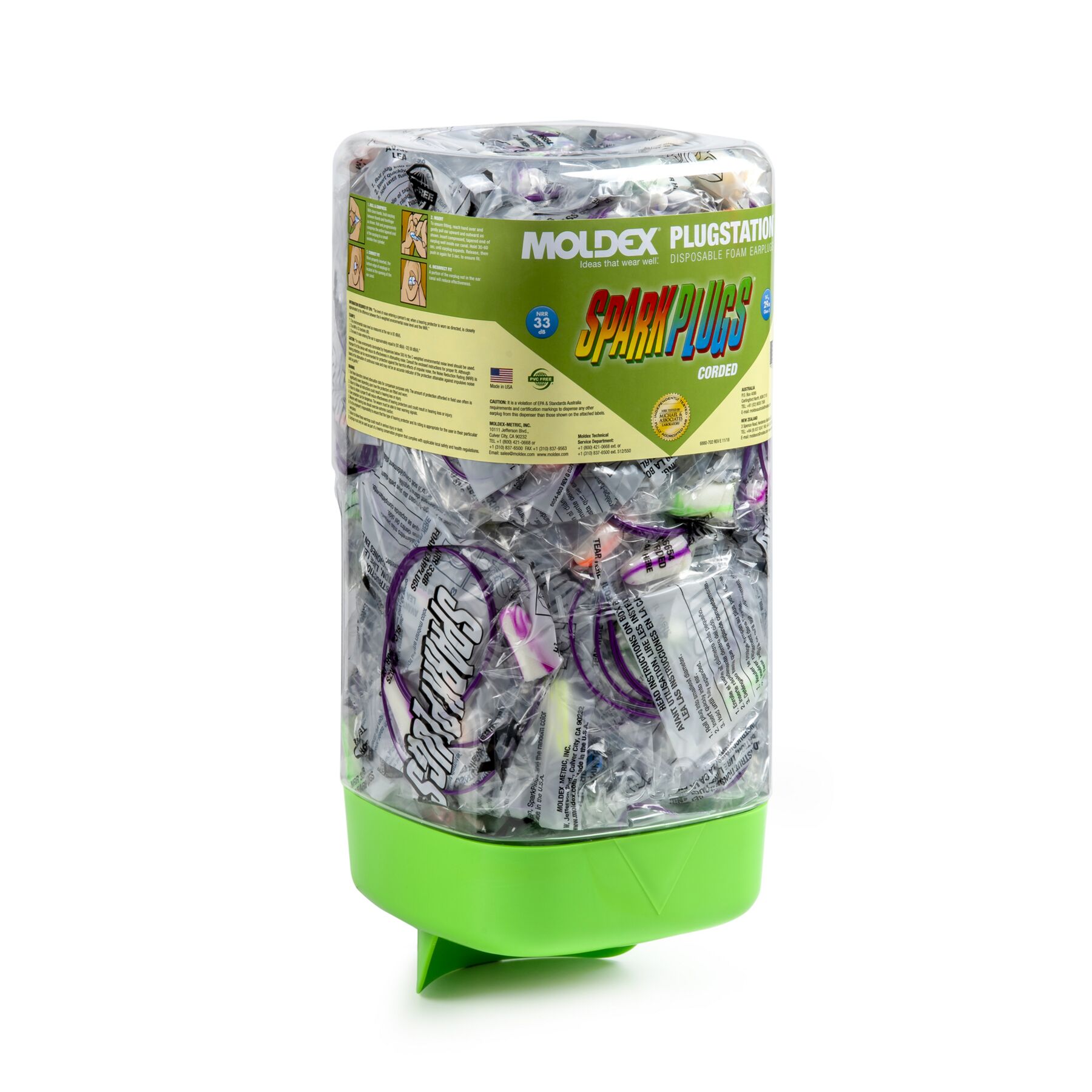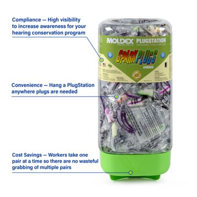 Meet Moldex SparkPlugs® PlugStation® 6880. Holds 150 individually wrapped pairs of corded earplugs and gives workers easy access to hearing protection wherever it’s needed. High visibility supports compliance by raising awareness for your hearing conservation program. Easily pair with our 6868 and 6869 convenient magnetic brackets for easy, hassle-free wall mounting solutions. Cost savings come built in, as workers take one pair of ear plugs at a time—no more wasteful grabbing of multiple pairs. All Moldex disposable foam earplugs and PlugStation dispensers are 100% Made in America.