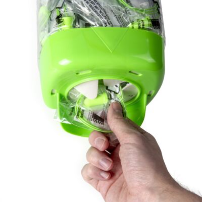 Pura-Fit® PlugStation Corded Bagged Dispenser, 1 pair per bag, 150 pairs per dispenser Hang and store earplugs around your neck, so you keep track of them. Hang Dispenser anywhere and everywhere. Design to reduce waste and cost. Recycable. INCREASED CONVIENENCE Corded PlugStations are an easy and convenient way of dispensing corded bagged earplugs anywhere and everywhere. Just hang in well trafficked convenient work areas. When PlugStation is empty simply toss it and hang a new one. INCREASED COST SAVINGS Workers take one pair at a time, so there is no wasteful grabbing of multiple pairs or pocket fill-ups that end up getting trashed without being used. Less waste means more cost savings. SOFT COMFORTABLE FIT SparkPlugs® earplugs are made of extra-soft, extra light foam. Their tapered shape fits easily in the ear canal, and seals gently and snugly. They’re so comfortable you’ll forget you’re wearing earplugs. HIGHEST INDEPENDANTLY TESTED NRR 33 dB EARPLUGS Therefore, you can have confidence in the level of protection when they are worn properly, making them suitable for most noisy environments. So, while they look like fun, they provide serious protection. Made in America.
