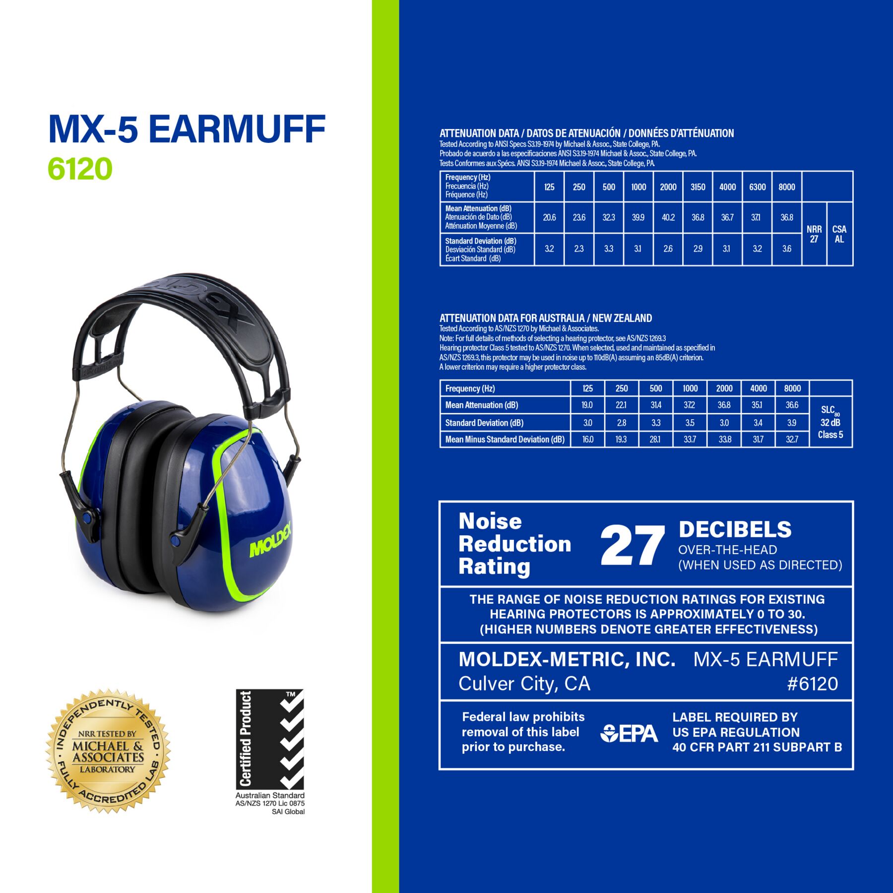 Moldex MX-5 Earmuff NRR 27dB, 6120