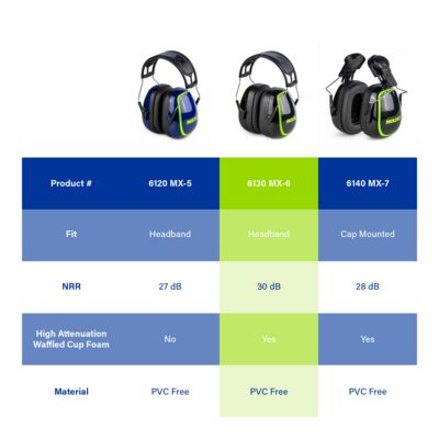 Meet the Moldex MX-6 6130 Earmuffs—durable, lightweight, and purpose-built for reliable over-ear hearing protection in higher-noise industrial environments. Soft foam ear cushions and a smooth, low-pressure headband create a secure seal that stays comfortable through long shifts. The pivoting earcups adjust easily to different head and ear shapes, delivering a consistent fit for a wide range of workers. A rugged outer shell is engineered to withstand tough jobsite conditions. The 6130 provides dependable noise reduction workers can trust day after day. Also available in a hard hat–mounted 6140 version.
