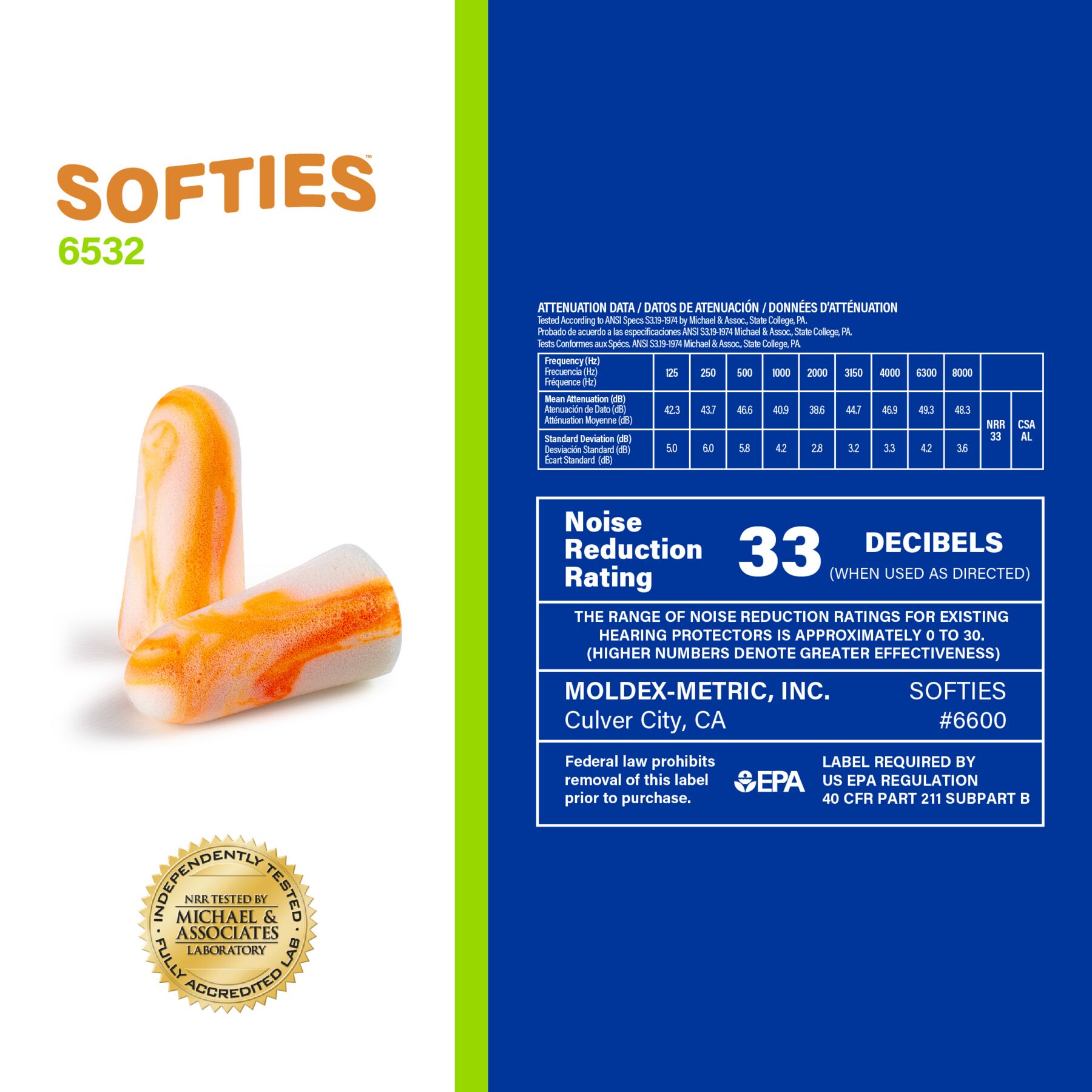 Moldex Softies® EcoStation® XL Uncorded Disposable Foam Earplug Dispenser Refill 6532, NRR 33 dB