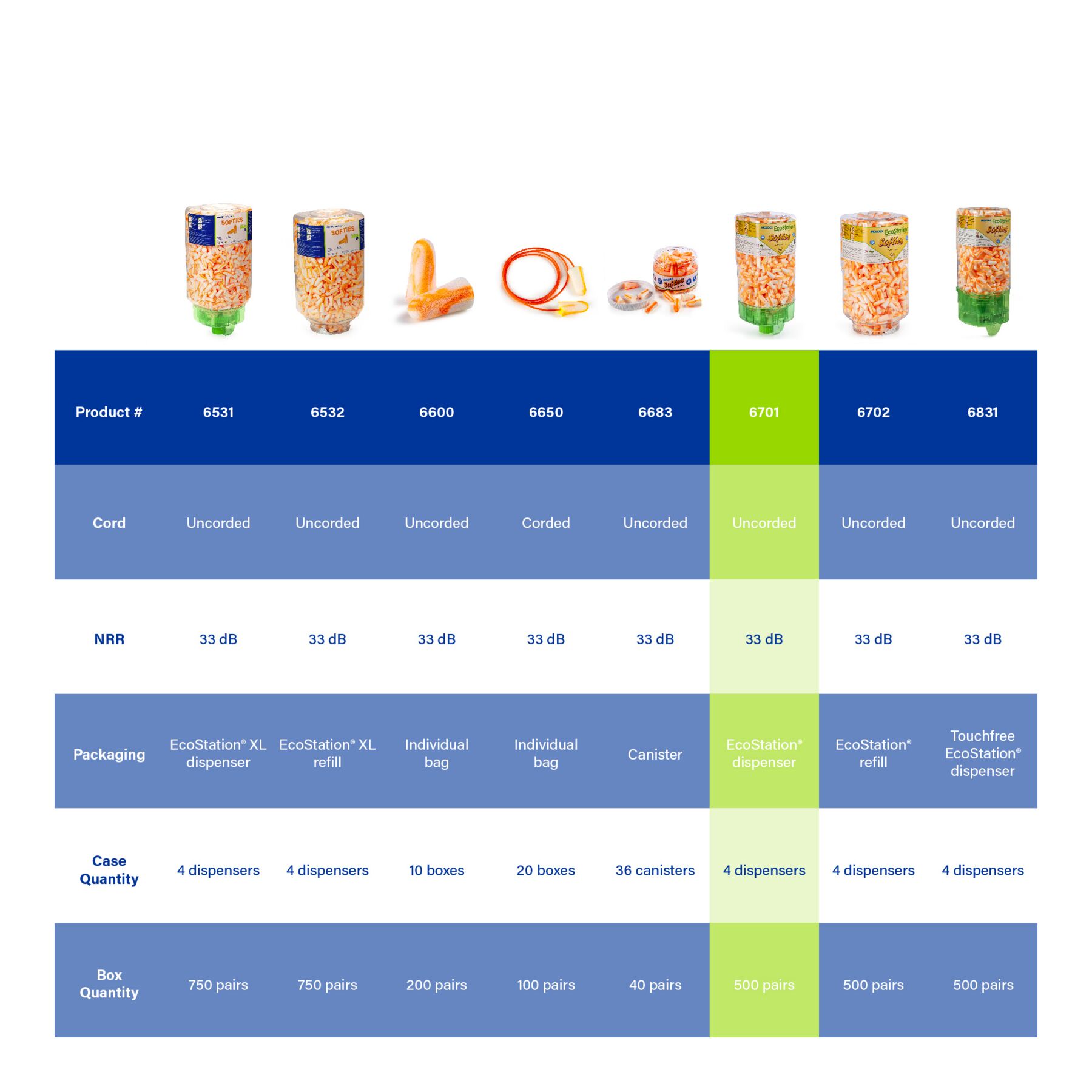 Moldex Softies® EcoStation® Uncorded Disposable Foam Earplug Dispenser 6701, NRR 33dB