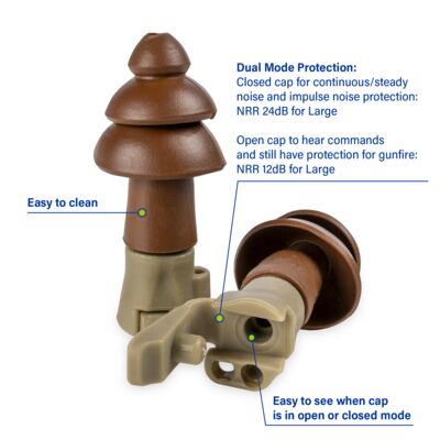 Moldex BattlePlugs® Impulse Reusable Earplug, Large, 6499 NRR 24 dB (cap closed) NRR 12dB (cap open)