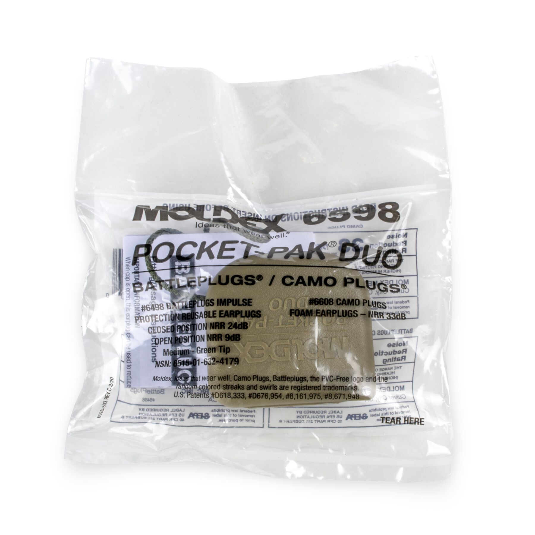Moldex BattlePlugs® 6598 Combo Pack Includes (Medium Size #6498) + Camo Plugs (#6608 Foam/uncorded) in Pocket-Pak Duo