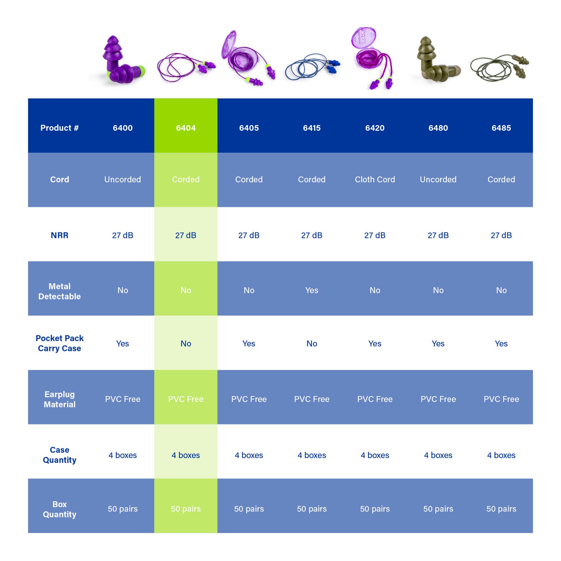 Meet Moldex® Rockets® Reusable Corded Earplugs 6404, durable hearing protection designed for repeated use in demanding work environments. The soft, flexible flanges provide a superior seal and fit most size ear canals, while the air bubble in the tip provides cushioned comfort for all-day wear. Independently tested to an NRR of 27 dB, the flexible flanges deliver effective noise reduction while supporting consistent wear and long-term comfort. The attached cord helps keep earplugs accessible between uses, making them ideal for intermittent noise environments. Washable and built for extended service life, Rockets® reusable earplugs offer a practical, cost-effective solution for everyday hearing protection. Made in the USA.
