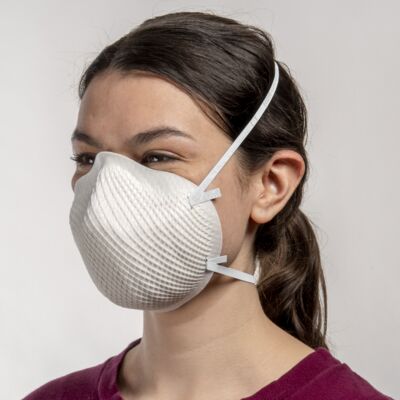 Meet Moldex® 2201, part of our original N95 Series, 2-Strap Respirator, Made in America. It's designed with our distinctive Dura-Mesh shell, allowing the respirator to resist collapse in hot, humid environments and keep its shape longer. Straps are securely attached so they don’t break at the seal. The facepiece is naturally contoured without pressure points, with a molded nose bridge and soft foam nose cushion that provides the wearer with an easy comfortable fit, without the need for metal noseband to adjust. The results? A respirator that’s strong, dependable, and comfortable for workers to wear throughout the shift.