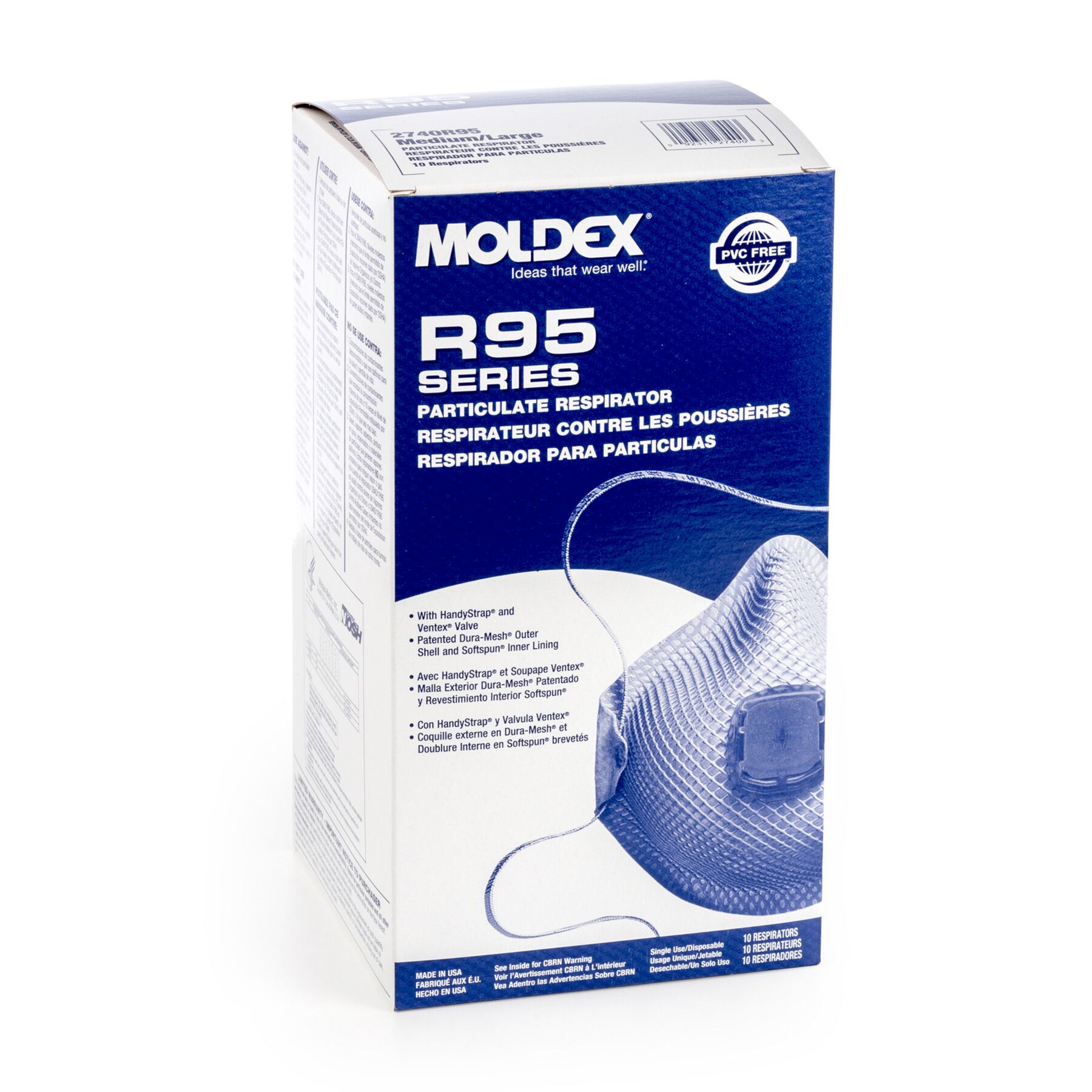 Moldex 2840R95 Disposable HandyStrap® Particulate Respirator Plus Nuisance Organic Vapors, with Ventex Valve, Size Medium/Large, NIOSH Approved