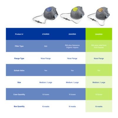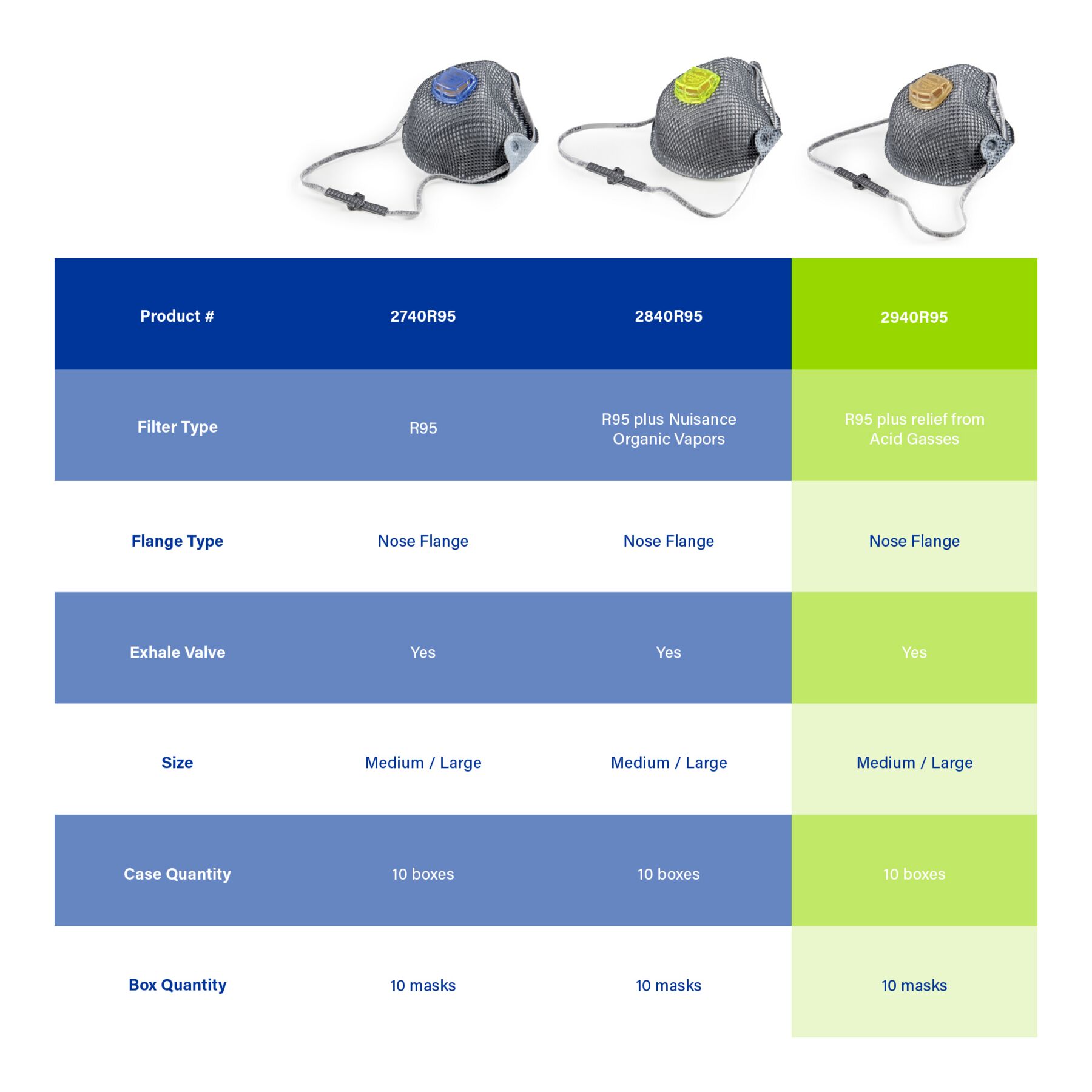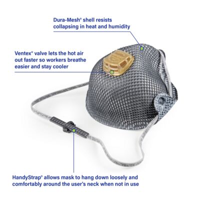 Meet Moldex® 2940 Series, Nuisance Acid Gases, HandyStrap Respirator with Ventex Valve, Made in America. R95 protection, resistant to oil- and non-oil-based particulates alike. The HandyStrap® lets it hang around your neck when not in use. Our distinctive Dura-Mesh® shell resists collapse in hot, humid environments and helps the respirator keep its shape longer. Added sorbent helps to filter nuisance levels of acid gas irritants. The facepiece is naturally contoured without pressure points. The results? A respirator that’s strong, dependable, and comfortable for workers to wear throughout the shift.