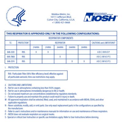Moldex 2940R95 Disposable HandyStrap® Particulate Respirator, Plus Nuisance Acid Gases, with Ventex Valve, Medium/Large, NIOSH Approved