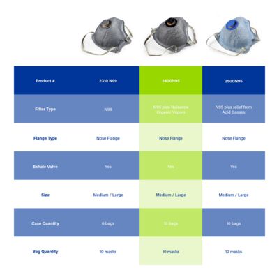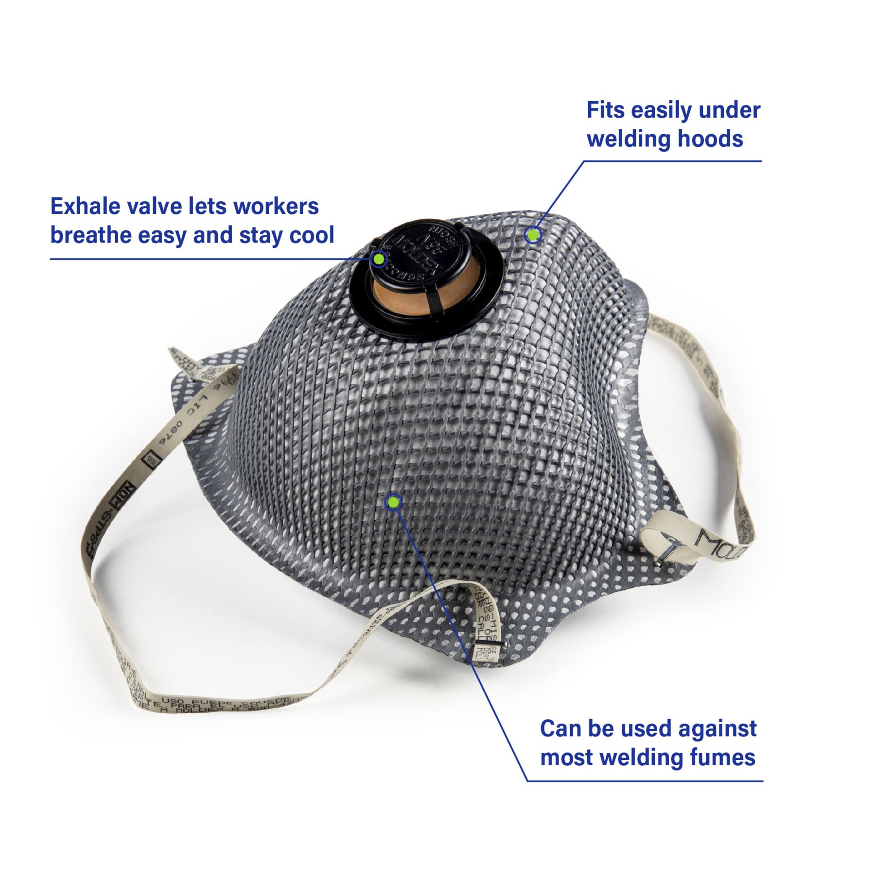 Meet Moldex® 2400V, Nuisance Organic Vapors, 2-Strap Respirator with valve, Made in America. Our most popular respirators, now packaged for onsite vending machines. It’s designed with our distinctive Dura-Mesh shell, allowing the respirator to resist collapse in hot, humid environments and keep its shape longer. Added carbon layer helps filter out nuisance organic vapor odors (less than OSHA PEL). The facepiece is naturally contoured without pressure points, with a molded nose bridge and soft foam nose cushion. The results? A respirator that’s strong, dependable, and comfortable for workers to wear throughout the shift.