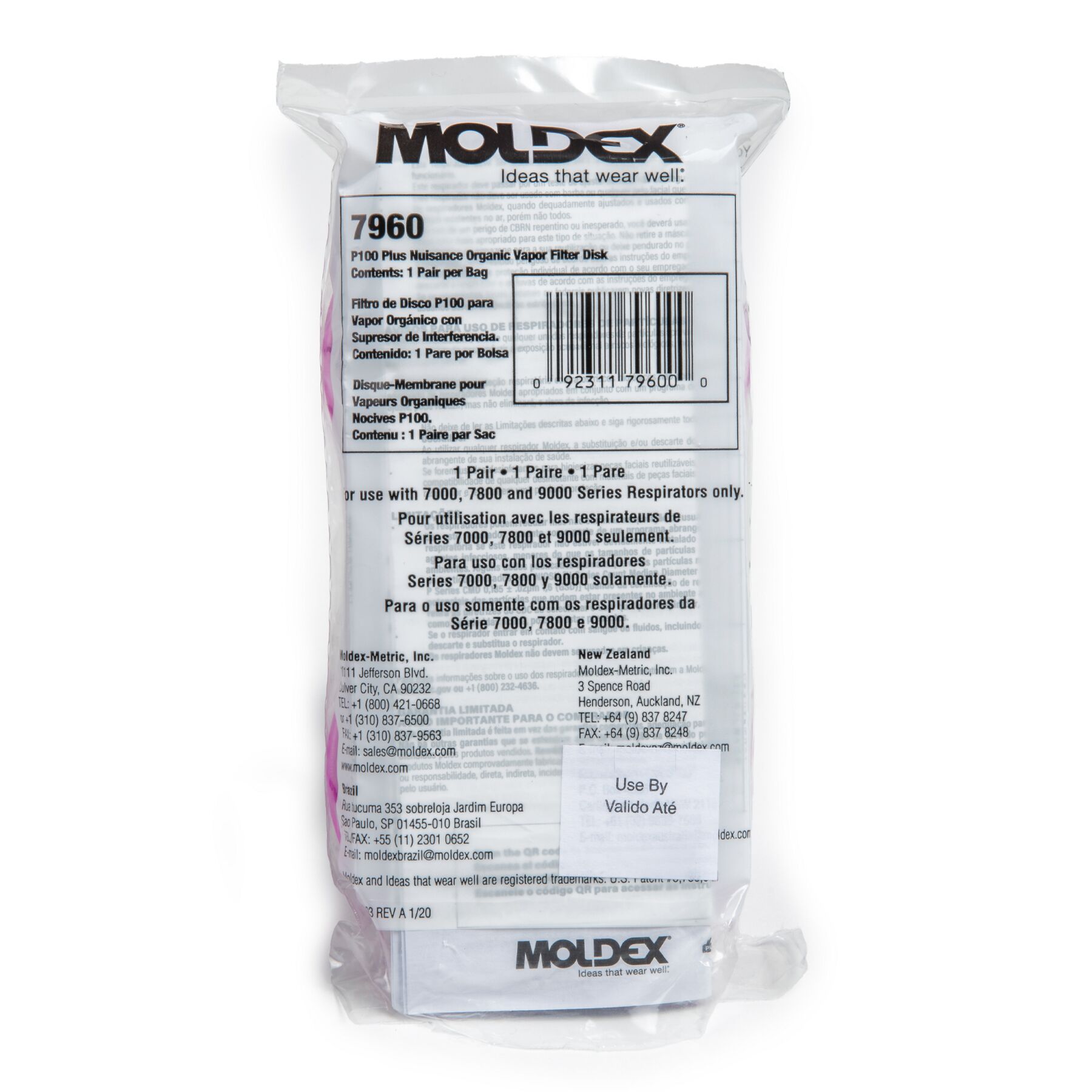 Moldex 7960 P100 Filter Disks with Nuisance Organic Vapors feature a keyless bayonet-style attachment for quick assembly 7000/7800/9000 Series Reusable Respirators.