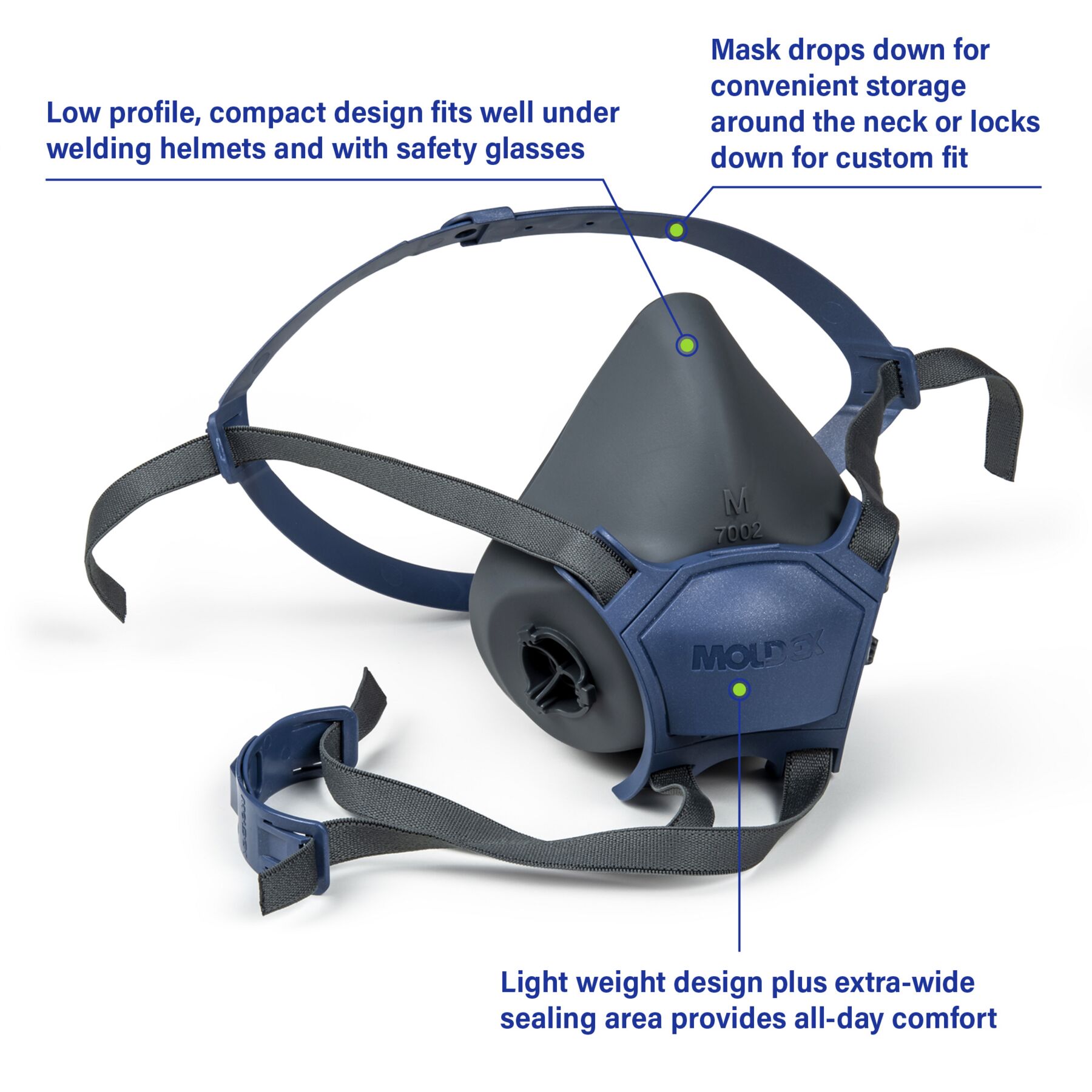 Meet the Moldex® 7000 Series Reusable Half Mask Respirator. Designed for protection. Built for comfort. We designed the 7002 facepiece to be the most user-friendly respirator on the market. This respirator features fewer parts, minimal easy maintenance, and a wider field of vision. Easy mount bayonet cartridge/filter attachment. Adjustable head harness for a custom fit. It is ultralight weight, durable, and economical. The results? Simple, comfortable and economical respiratory protection that’s just plain easy to wear.