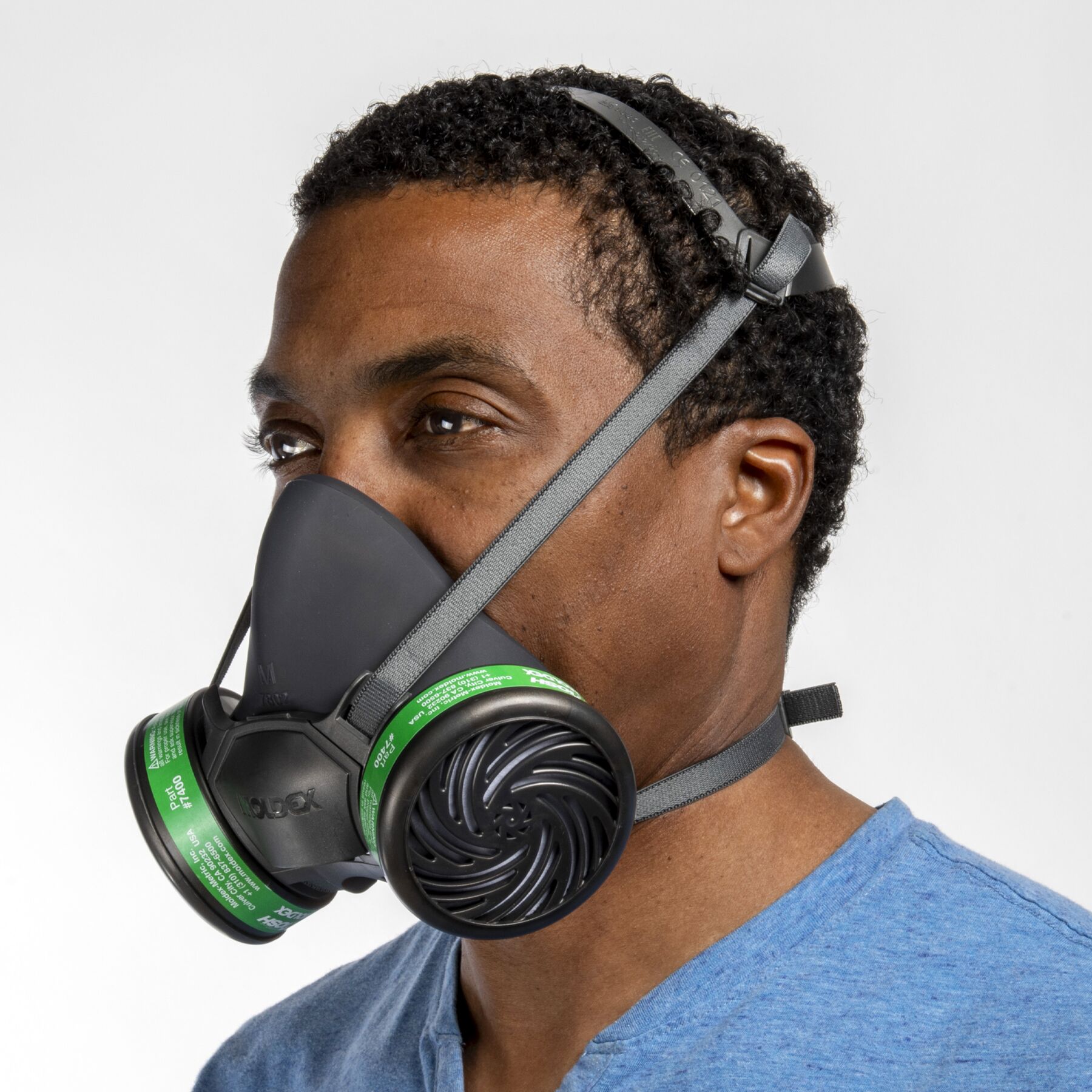 Moldex 7400 Ammonia/Methylamine Cartridges feature a keyless bayonet-style attachment for quick assembly with 7000/7800/9000 series respirators. They can be paired with N95 or P100 round filters for particulate protection.