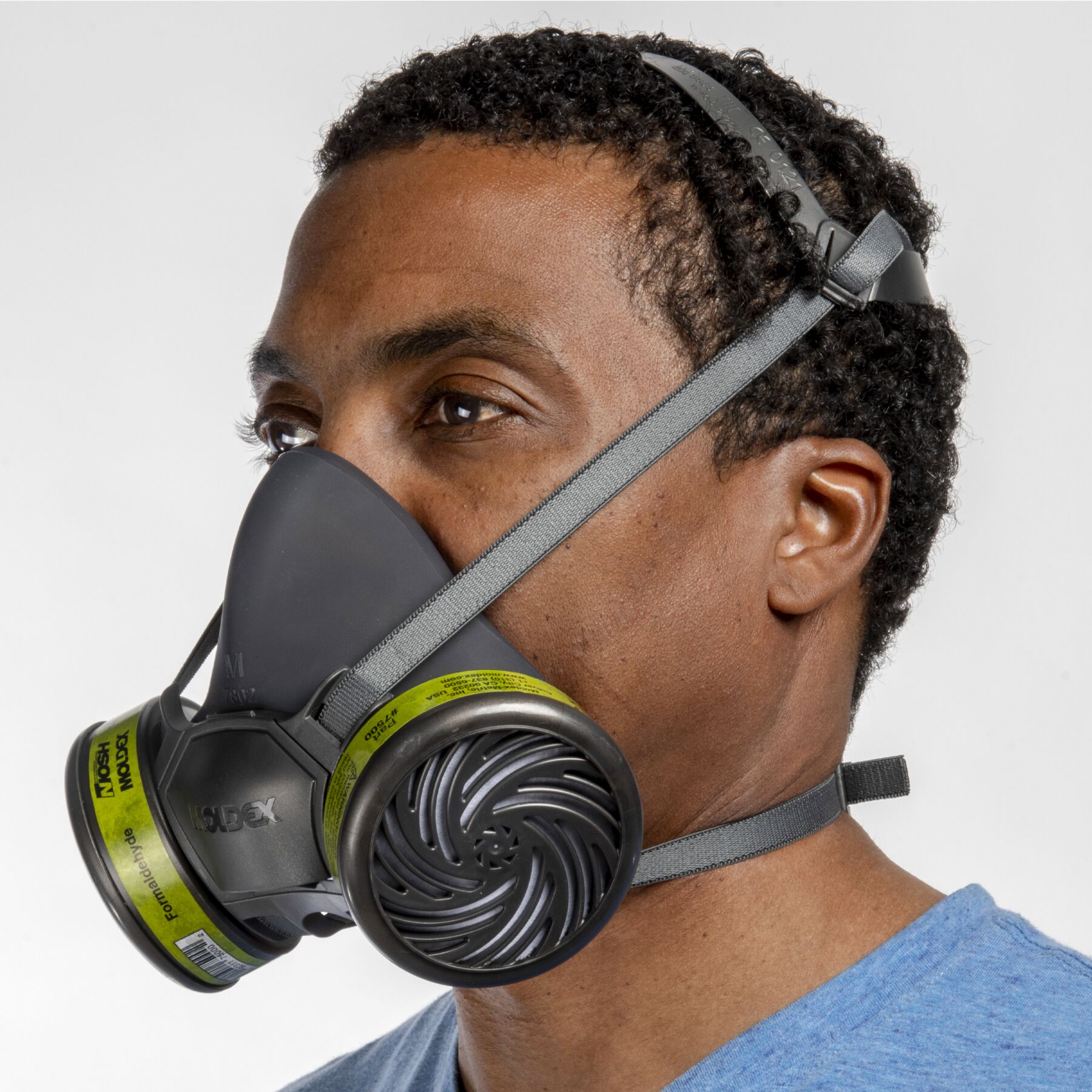 Moldex 7500 Formaldehyde Cartridges feature a keyless bayonet-style attachment for quick assembly with 7000/7800/9000 series respirators. They can be paired with N95 or P100 round filters for particulate protection.