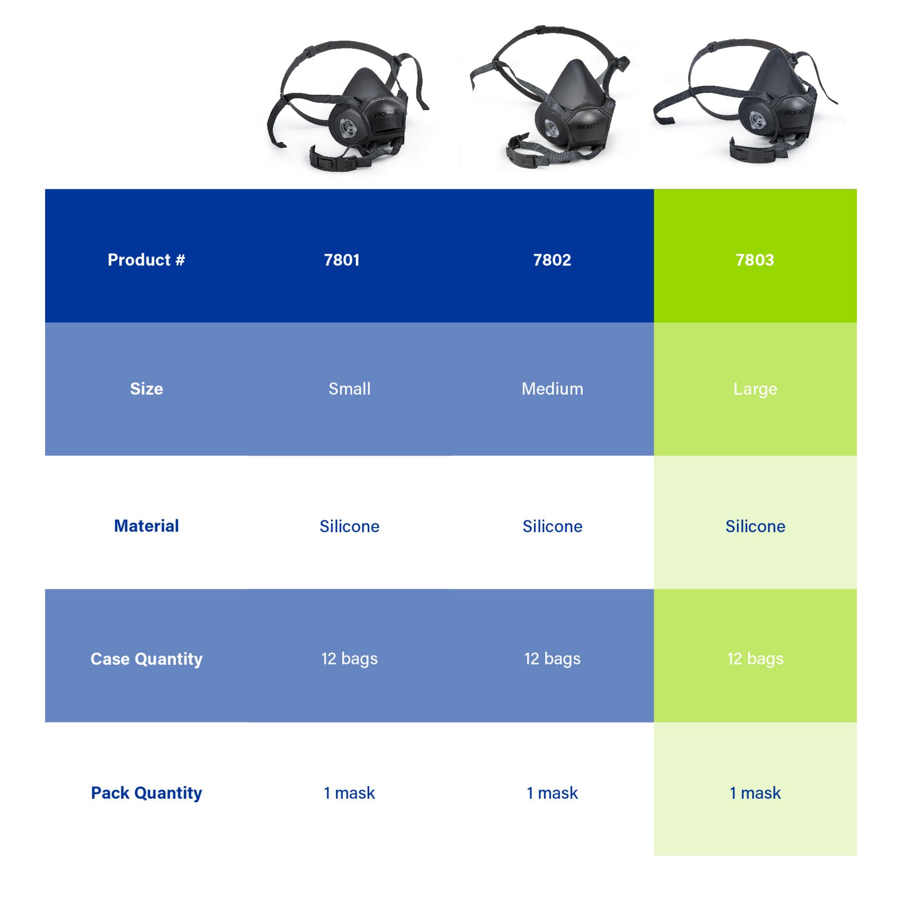 Meet the Moldex® 7800 Series Reusable Half Mask Respirator. Designed for protection. Built for comfort. We designed the 7803 facepiece to be the most user-friendly respirator on the market. This respirator made from silicone, features fewer parts, minimal easy maintenance, and a wider field of vision. Easy mount bayonet cartridge/filter attachment. Adjustable head harness for a custom fit. It is ultralight weight, durable, and economical. Maximum comfort and extended use are built-in. The results? Simple, comfortable and economical respiratory protection that’s just plain easy to wear.