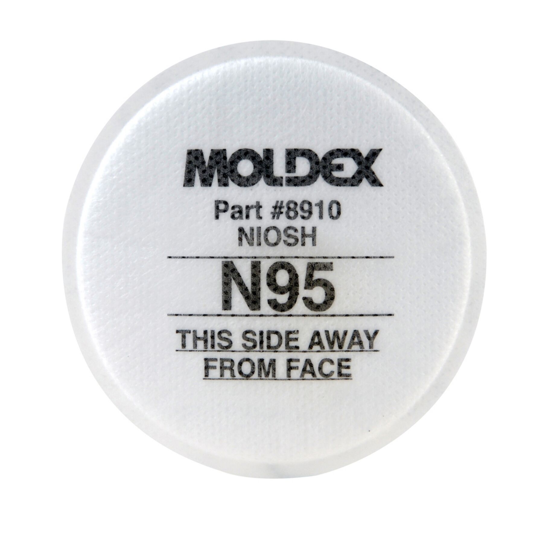Moldex 8910 N95 round particulate pre-filter. Can be paired with all Moldex circular chemical cartridges using the 7020 pre-filter retainer.