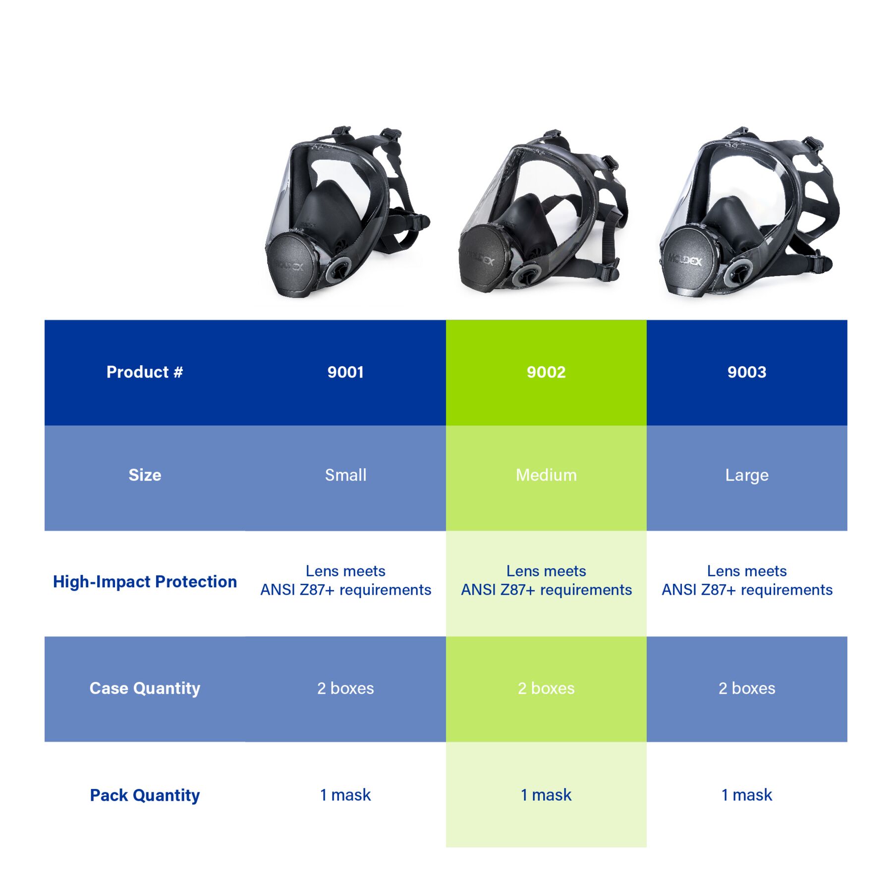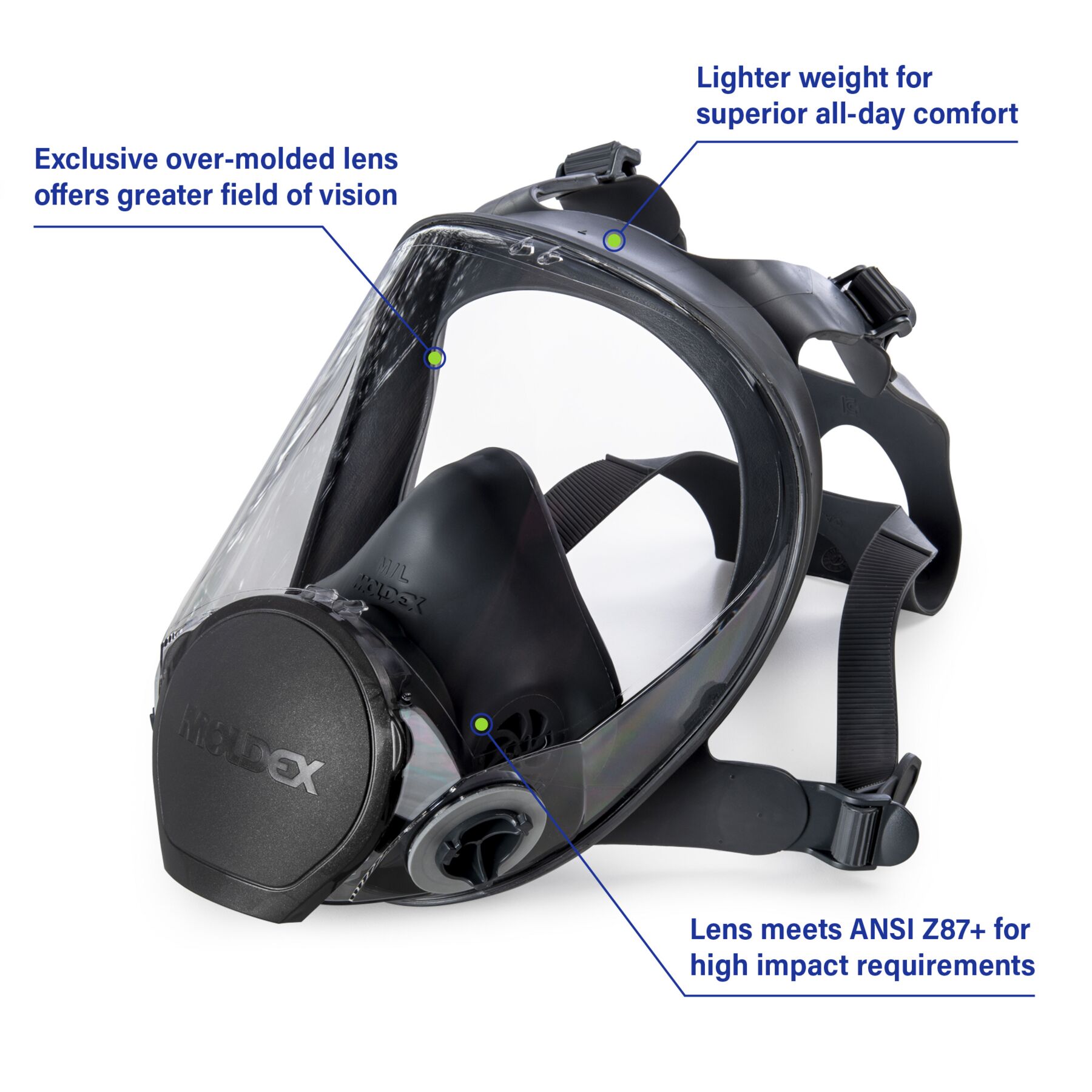 Meet the Moldex® 9000 Series Reusable Full Face Respirator. Designed for protection. Built for comfort. Engineered to be one of the most user-friendly respirators on the market, the 9002 features an extra-wide panoramic lens with peripheral side panels, an exclusive over-molded flange design, and a scratch-resistant coating that meets ANSI Z87+ impact protection. Weighing less than 13 oz, it delivers all-day comfort and extended wearability. Only nine parts compared to other respirators with up to 24, maintenance is made easy. The result? Simple, comfortable, and economical respiratory protection that’s just plain easy to wear.