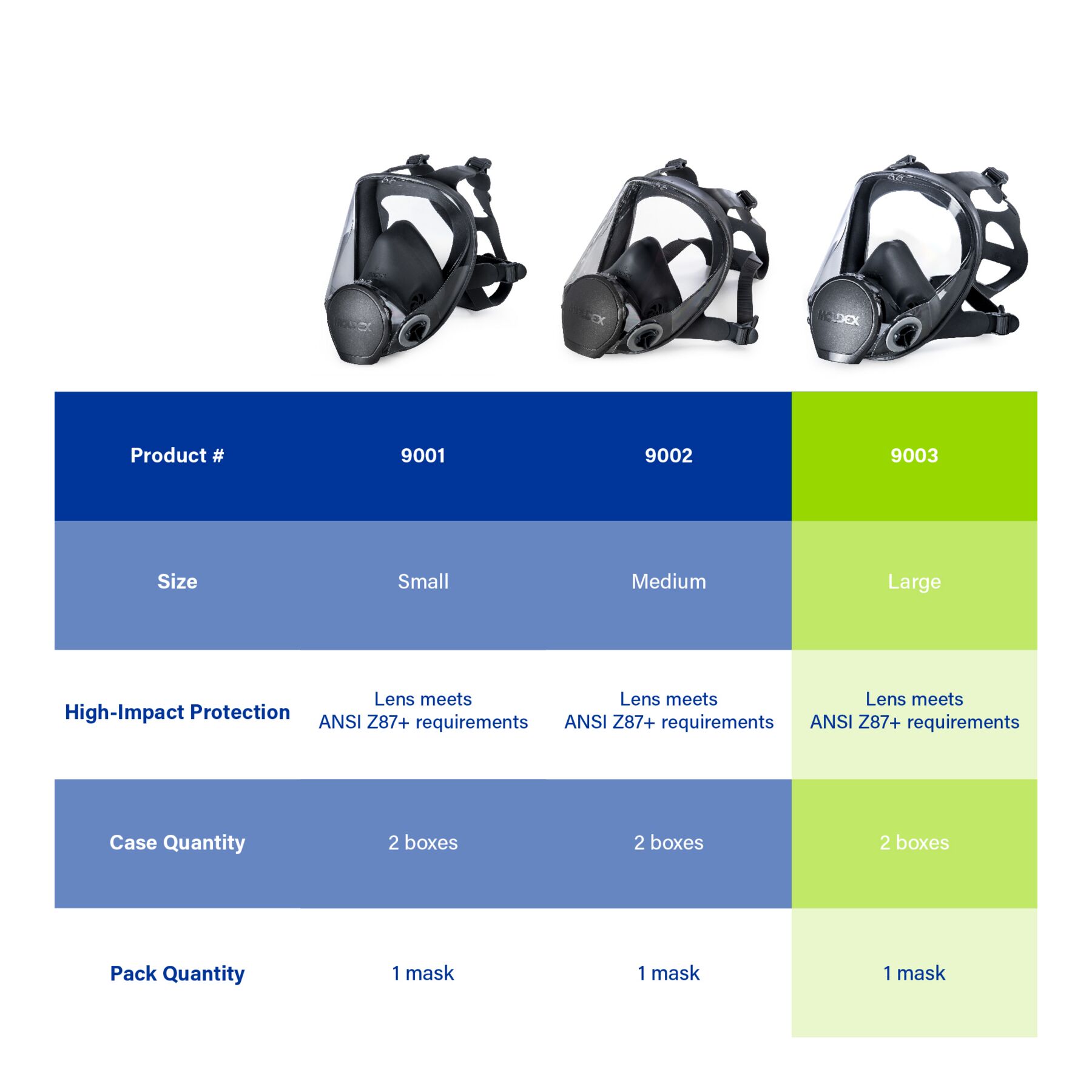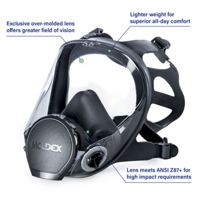 Meet the Moldex® 9000 Series Reusable Full Face Respirator. Designed for protection. Built for comfort. Engineered to be one of the most user-friendly respirators on the market, the 9003 features an extra-wide panoramic lens with peripheral side panels, an exclusive over-molded flange design, and a scratch-resistant coating that meets ANSI Z87+ impact protection. Weighing less than 13 oz, it delivers all-day comfort and extended wearability. Only nine parts compared to other respirators with up to 24, maintenance is made easy. The result? Simple, comfortable, and economical respiratory protection that’s just plain easy to wear.