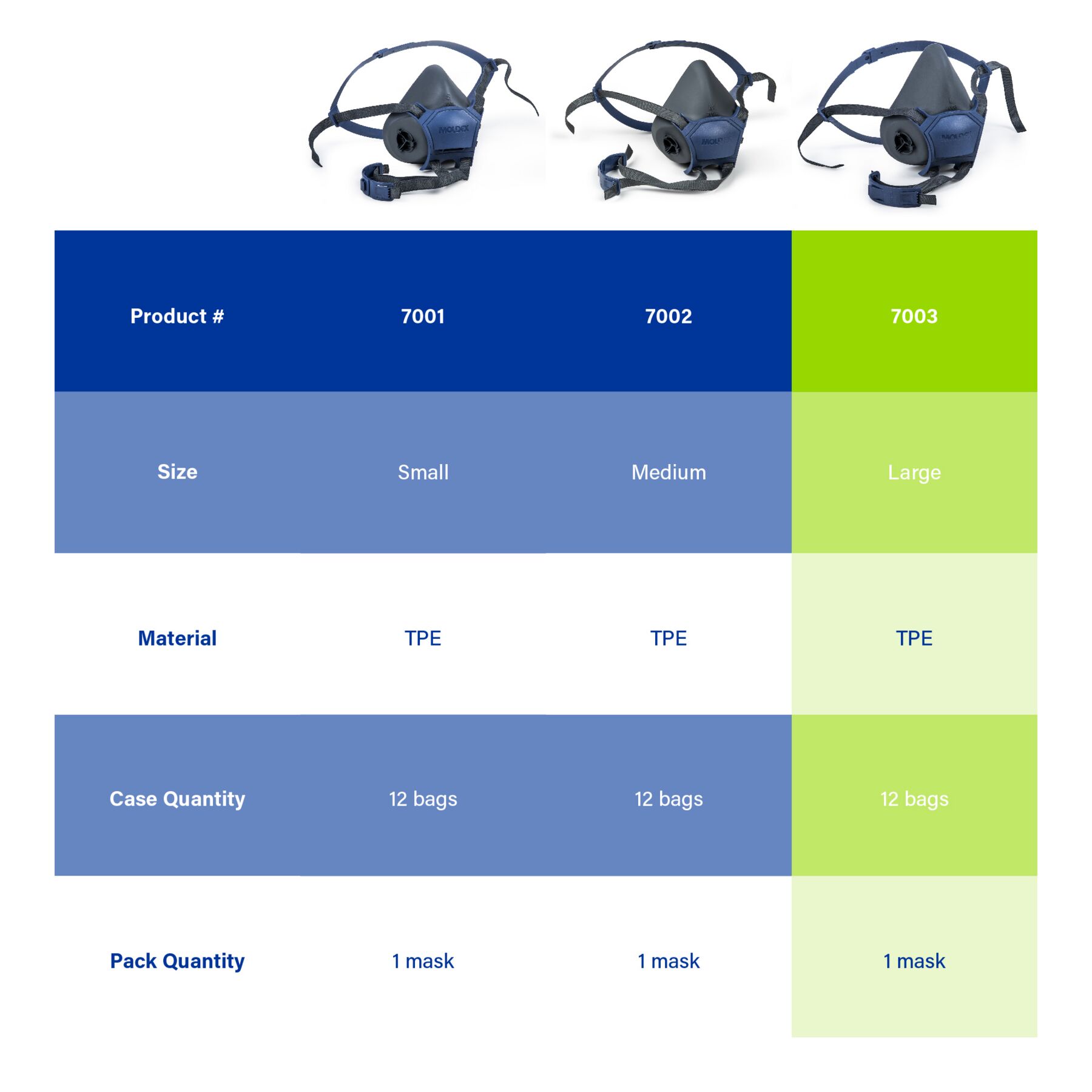 Moldex 7003 Reusable Half Mask Respirator, Size Large